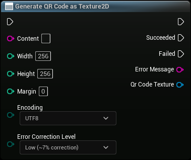 Generates a QR code from a text string of specified size in pixels as a Texture2D.